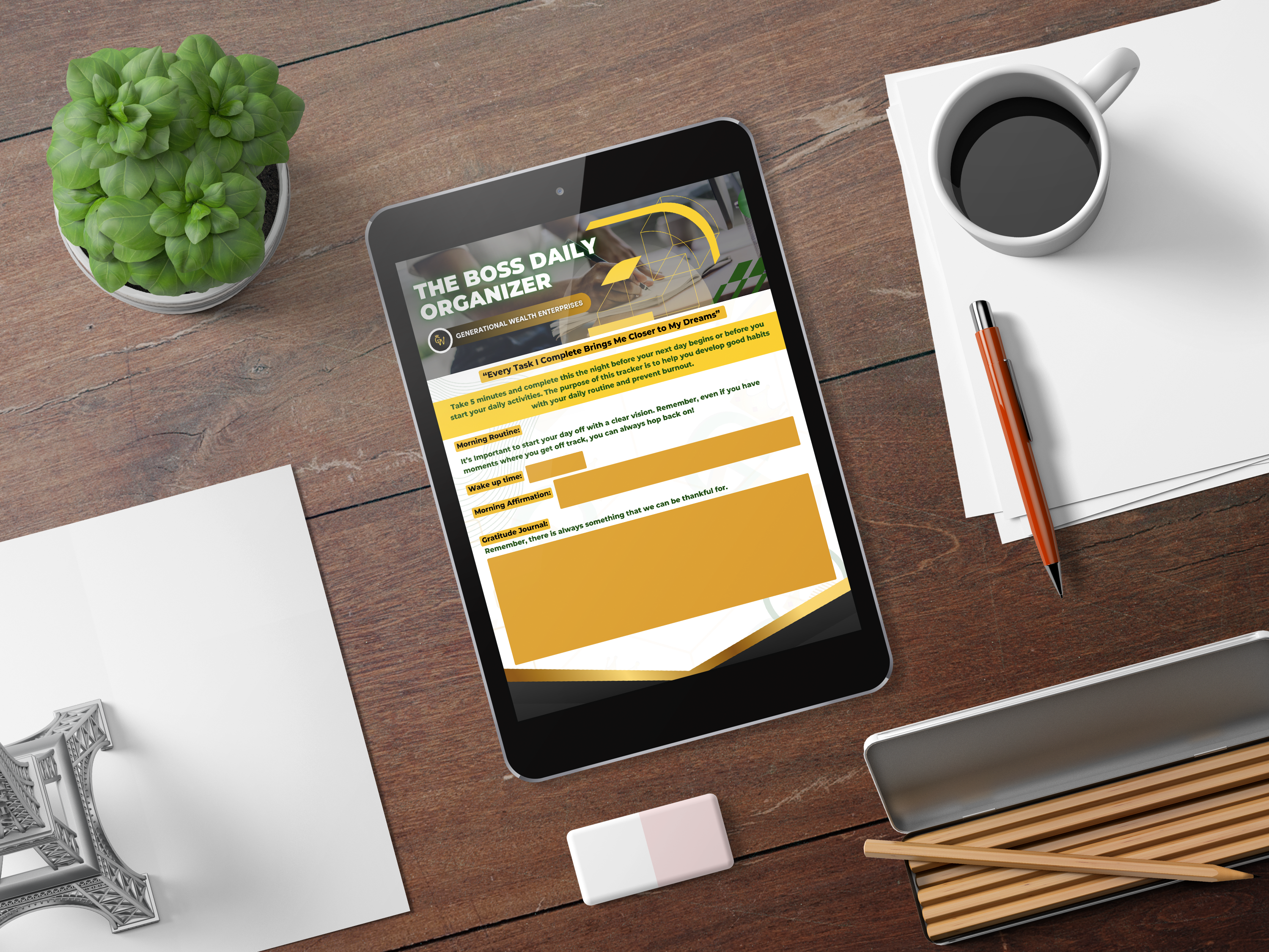 This planner isn't just a tool for scheduling—it's your daily partner in refining your morning and evening routines, and reinforcing positive affirmations. It’s yours for free when you complete our interactive quiz designed to fine-tune your business approach and daily habits.